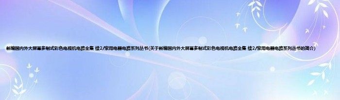 本文关于新编国内外大屏幕多制式彩色电视机电路全集 续2/家用电器电路系列丛书的简介就讲解完毕,希望对大家有所帮助。