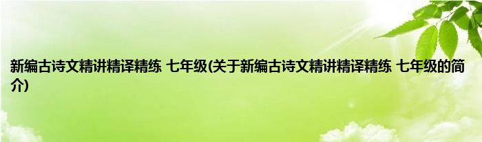 本文关于新编古诗文精讲精译精练 七年级的简介就讲解完毕,希望对大家有所帮助。