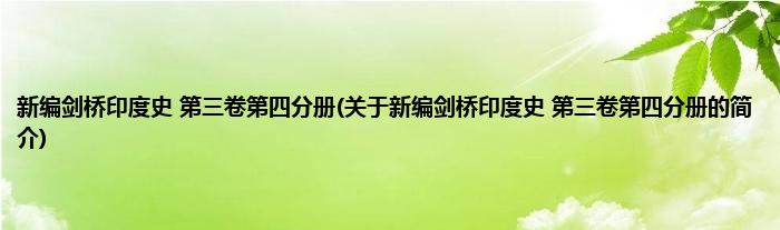 本文关于新编剑桥印度史 第三卷第四分册的简介就讲解完毕,希望对大家有所帮助。