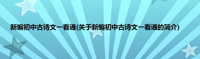本文关于新编初中古诗文一看通的简介就讲解完毕,希望对大家有所帮助。