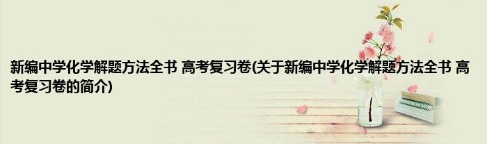 本文关于新编中学化学解题方法全书 高考复习卷的简介就讲解完毕,希望对大家有所帮助。