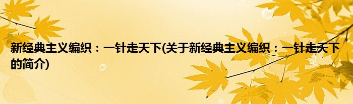 大家好,新经典主义编织:一针走天下,关于新经典主义编织:一针走天下的简介很多人还不知道,现在让我们一起来看看吧!