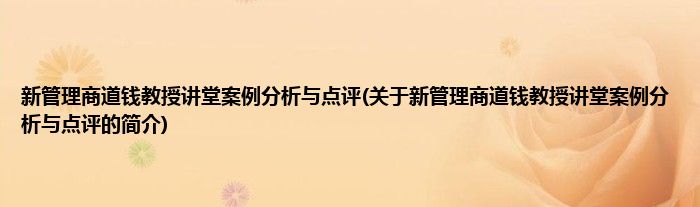 新管理商道钱教授讲堂案例分析与点评(关于新管理商道钱教授讲堂案例分析与点评的简介)
