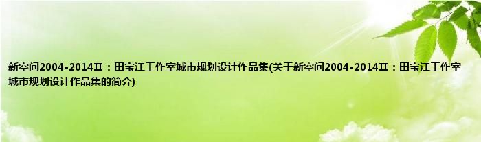 1、 《新空间2004-2014Ⅱ:田宝江工作室城市规划设计作品集》是2014年同济大学出版社出版的图书。