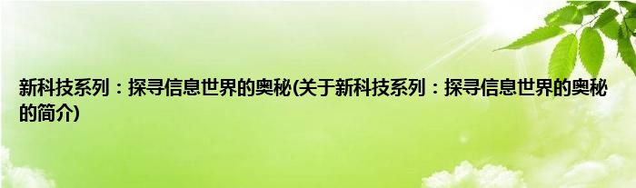 本文关于新科技系列:探寻信息世界的奥秘的简介就讲解完毕,希望对大家有所帮助。