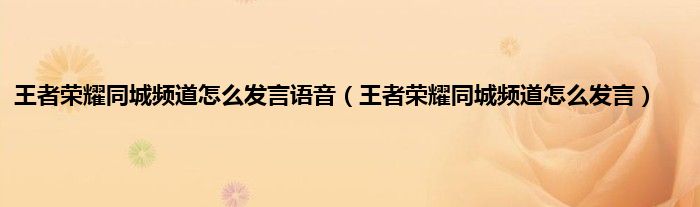 王者荣耀同城频道怎么发言语音(王者荣耀同城频道怎么发言)