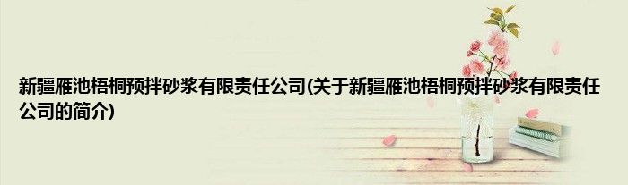 本文关于新疆雁池梧桐预拌砂浆有限责任公司的简介就讲解完毕,希望对大家有所帮助。