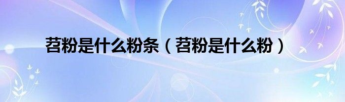 一、 苕粉是什么