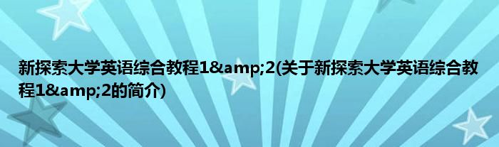 本文关于新探索大学英语综合教程1&2的简介就讲解完毕,希望对大家有所帮助。