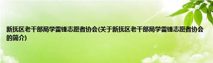 大家好,新抚区老干部局学雷锋志愿者协会,关于新抚区老干部局学雷锋志愿者协会的简介很多人还不知道,现在让我们一起来看看吧!