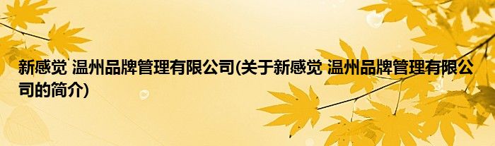 本文关于新感觉 温州品牌管理有限公司的简介就讲解完毕,希望对大家有所帮助。