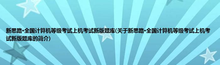 本文关于新思路·全国计算机等级考试上机考试新版题库的简介就讲解完毕,希望对大家有所帮助。