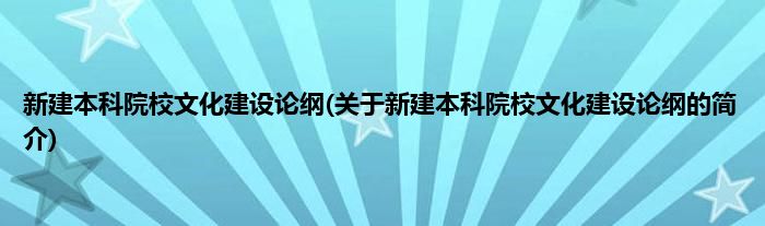 本文关于新建本科院校文化建设论纲的简介就讲解完毕,希望对大家有所帮助。