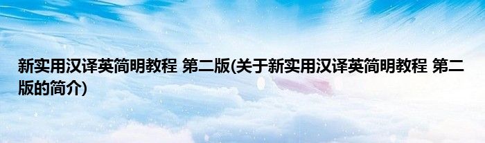 大家好,新实用汉译英简明教程 第二版,关于新实用汉译英简明教程 第二版的简介很多人还不知道,现在让我们一起来看看吧!