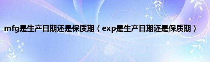 大家好,小科来为大家解答以上问题。mfg是生产日期还是保质期,exp是生产日期还是保质期很多人还不知道,现在让我们一起来看看吧!