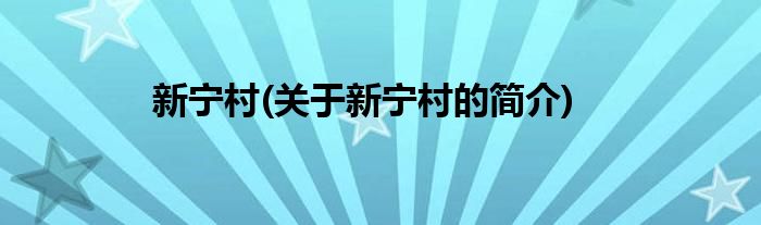 大家好,新宁村,关于新宁村的简介很多人还不知道,现在让我们一起来看看吧!