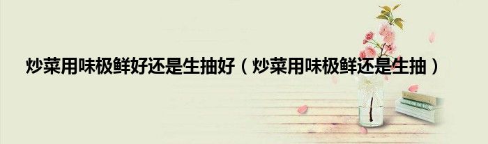 大家好,小科来为大家解答以上问题。炒菜用味极鲜好还是生抽好,炒菜用味极鲜还是生抽很多人还不知道,现在让我们一起来看看吧!