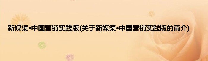 本文关于新媒渠·中国营销实践版的简介就讲解完毕,希望对大家有所帮助。