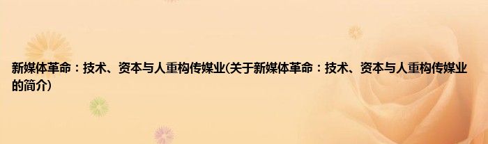 大家好,新媒体革命:技术、资本与人重构传媒业,关于新媒体革命:技术、资本与人重构传媒业的简介很多人还不知道,现在让我们一起来看看吧!