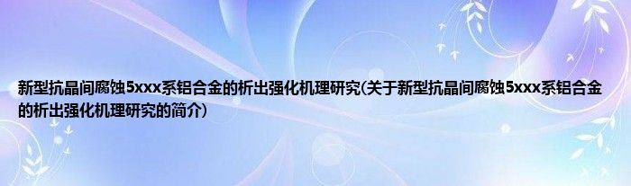 本文关于新型抗晶间腐蚀5xxx系铝合金的析出强化机理研究的简介就讲解完毕,希望对大家有所帮助。