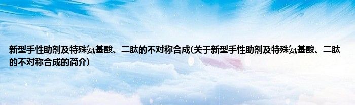 新型手性助剂及特殊氨基酸、二肽的不对称合成(关于新型手性助剂及特殊氨基酸、二肽的不对称合成的简介)