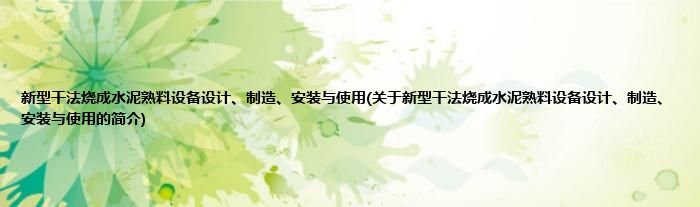 大家好,新型干法烧成水泥熟料设备设计、制造、安装与使用,关于新型干法烧成水泥熟料设备设计、制造、安装与使用的简介很多人还不知道,现在让我们一起来看看吧!