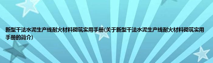 本文关于新型干法水泥生产线耐火材料砌筑实用手册的简介就讲解完毕,希望对大家有所帮助。