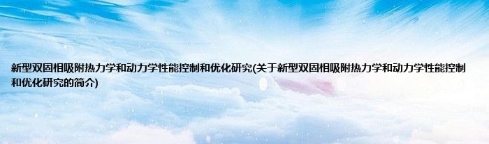 大家好,新型双固相吸附热力学和动力学性能控制和优化研究,关于新型双固相吸附热力学和动力学性能控制和优化研究的简介很多人还不知道,现在让我们一起来看看吧!
