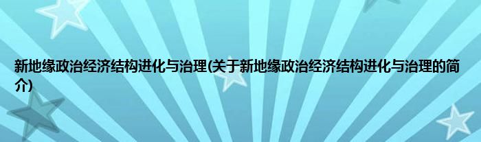 本文关于新地缘政治经济结构进化与治理的简介就讲解完毕,希望对大家有所帮助。