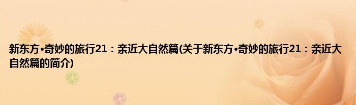 本文关于新东方·奇妙的旅行21:亲近大自然篇的简介就讲解完毕,希望对大家有所帮助。