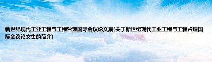 本文关于新世纪现代工业工程与工程管理国际会议论文集的简介就讲解完毕,希望对大家有所帮助。