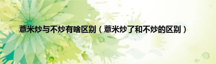 大家好,小科来为大家解答以上问题。薏米炒与不炒有啥区别,薏米炒了和不炒的区别很多人还不知道,现在让我们一起来看看吧!