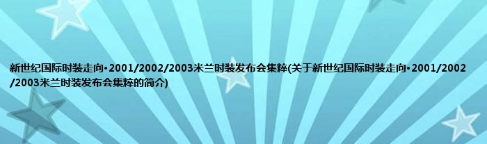 本文关于新世纪国际时装走向·2001/2002/2003米兰时装发布会集粹的简介就讲解完毕,希望对大家有所帮助。