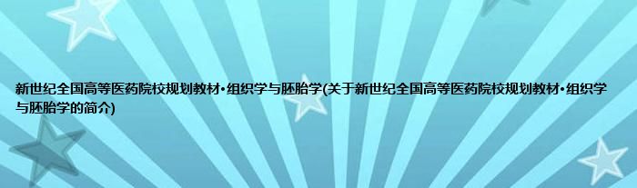 1、 《新世纪全国高等医药院校规划教材·组织学与胚胎学》是2008年6月1日中国中医药出版社出版的图书。