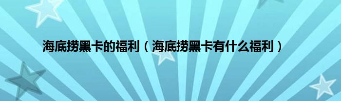 一、 海底捞黑卡有什么福利