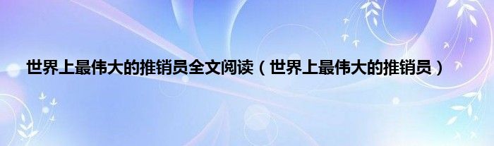 大家好,小常来为大家解答以上问题。世界上最伟大的推销员全文阅读,世界上最伟大的推销员很多人还不知道,现在让我们一起来看看吧!