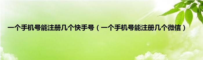 大家好,小常来为大家解答以上问题。一个手机号能注册几个快手号,一个手机号能注册几个微信很多人还不知道,现在让我们一起来看看吧!