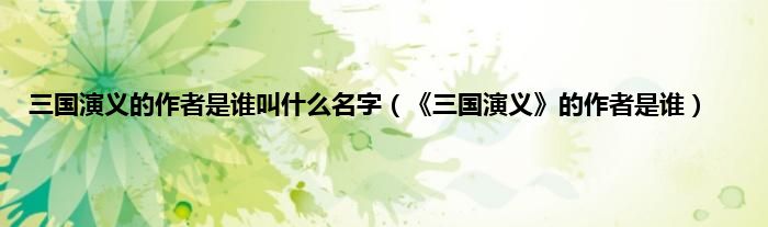 大家好,小常来为大家解答以上问题。三国演义的作者是谁叫什么名字,《三国演义》的作者是谁很多人还不知道,现在让我们一起来看看吧!