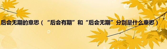 后会有期:指两人分别以后有见面的时候,用在离别时安慰对方。后会无期:期:时间。以后何时相会还没有一定的日期。1、后会有期注音:hòuhuìyǒuqī出处:元·乔孟符《扬州梦》第三折:“小官公事忙;后会有期也。”例句:独目鹰听完赫然而怒,却又不敢声张,只得让到一边拱手笑道:“既然阁下救定了她,我兄弟二人便就此告辞,山不转水转,后会有期。2、后会无期注音:hòuhuìwúqī出处:北朝·魏炫之《洛阳伽蓝记·大统寺》:“老翁送元宝出,云:‘后会难期。’以为凄恨,别甚殷勤。”例句:即使作别,也不会后会无期;即使沉默,也不会漠不关心;即使吵闹,也不会一刀两断;即使风雨,也不会将友情冲淡。好朋友,放飞思念,愿你心情灿烂!