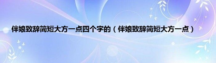 大家好,小常来为大家解答以上问题。伴娘致辞简短大方一点四个字的,伴娘致辞简短大方一点很多人还不知道,现在让我们一起来看看吧!