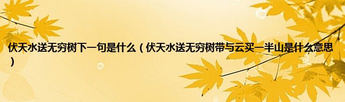 大家好,小常来为大家解答以上问题。伏天水送无穷树下一句是什么,伏天水送无穷树带与云买一半山是什么意思很多人还不知道,现在让我们一起来看看吧!