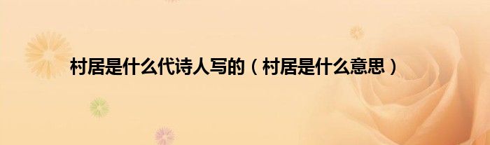 大家好,小常来为大家解答以上问题。村居是什么代诗人写的,村居是什么意思很多人还不知道,现在让我们一起来看看吧!