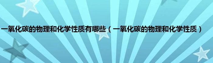 大家好,小常来为大家解答以上问题。一氧化碳的物理和化学性质有哪些,一氧化碳的物理和化学性质很多人还不知道,现在让我们一起来看看吧!