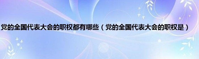 1、党的全国代表大会的职权是:听取和审查中央委员会的报告;听取和审査中央纪律检査委员会的报告;讨论并决定党的重大问题;修改党的章程;选举中央委员会;选举中央纪律检査委员会。