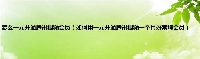 大家好,小常来为大家解答以上问题。怎么一元开通腾讯视频会员,如何用一元开通腾讯视频一个月好莱坞会员很多人还不知道,现在让我们一起来看看吧!