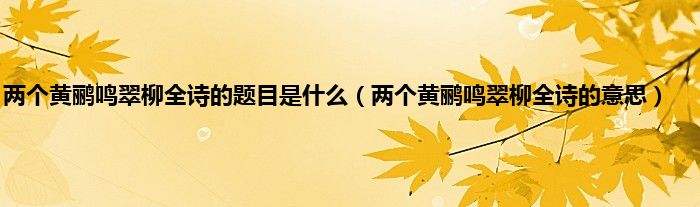 大家好,小常来为大家解答以上问题。两个黄鹂鸣翠柳全诗的题目是什么,两个黄鹂鸣翠柳全诗的意思很多人还不知道,现在让我们一起来看看吧!