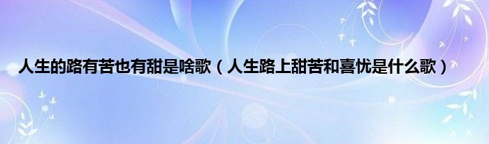 大家好,小常来为大家解答以上问题。人生的路有苦也有甜是啥歌,人生路上甜苦和喜忧是什么歌很多人还不知道,现在让我们一起来看看吧!