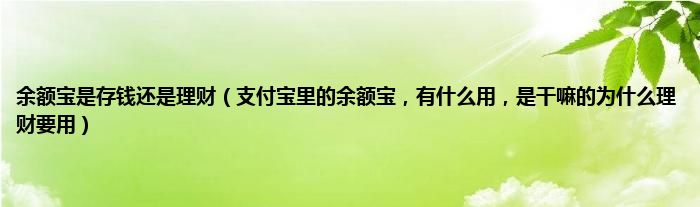 大家好,小常来为大家解答以上问题。余额宝是存钱还是理财,支付宝里的余额宝,有什么用,是干嘛的为什么理财要用很多人还不知道,现在让我们一起来看看吧!