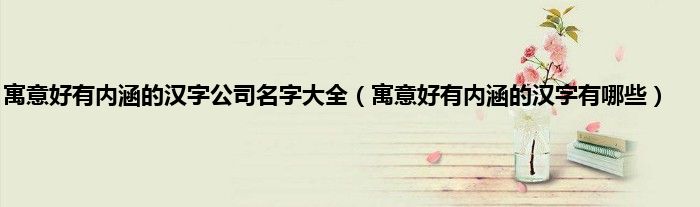 大家好,小常来为大家解答以上问题。寓意好有内涵的汉字公司名字大全,寓意好有内涵的汉字有哪些很多人还不知道,现在让我们一起来看看吧!
