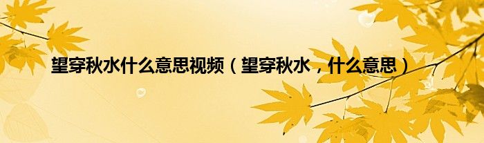 大家好,小常来为大家解答以上问题。望穿秋水什么意思视频,望穿秋水,什么意思很多人还不知道,现在让我们一起来看看吧!